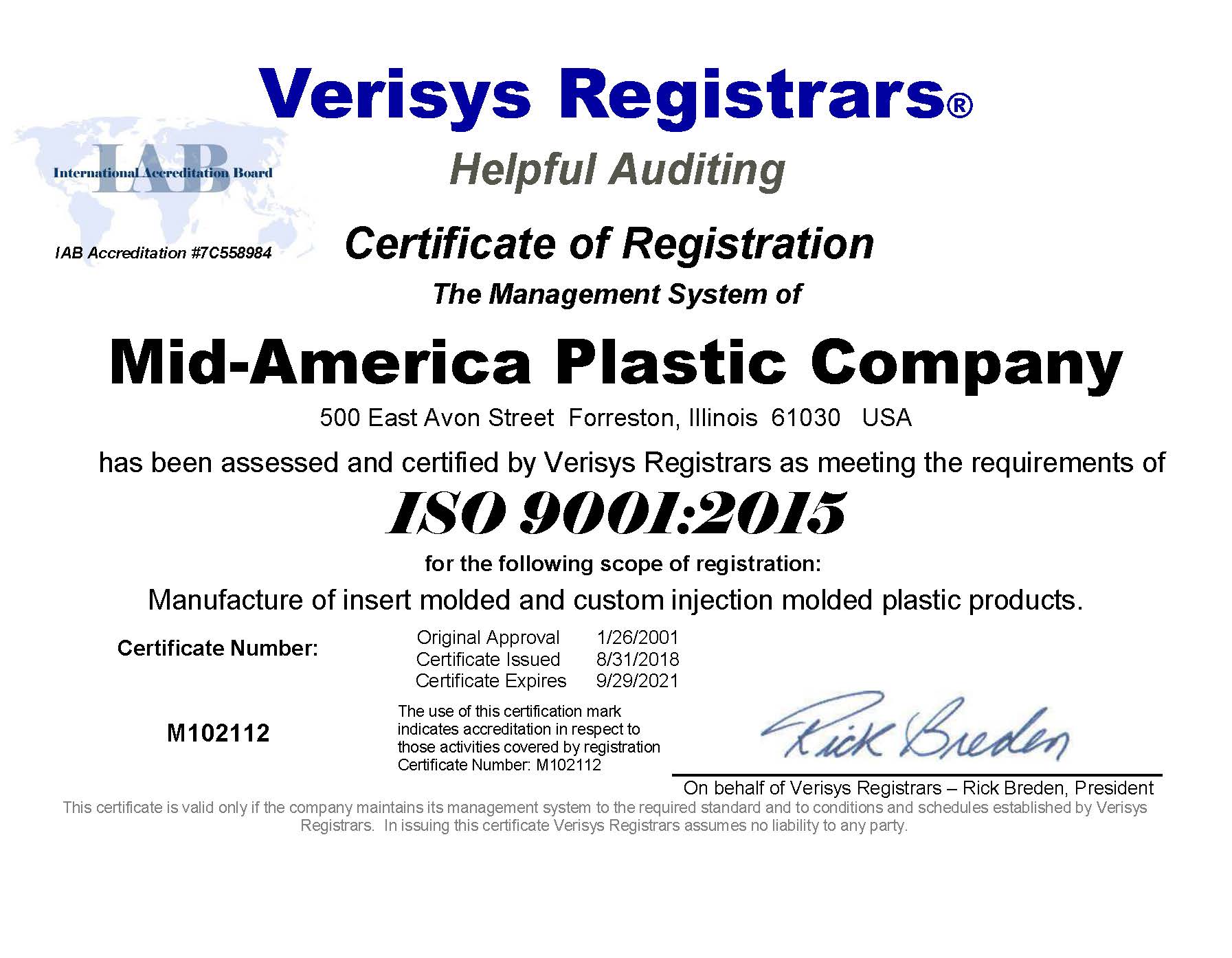 Mid-America Plastic Company is an ISO9001:2008 registered custom injection molding facility located 30 miles west of Rockford, Illinois. Established in 1968, we are customer focused with emphasis on superior quality, on time delivery, and competitive pricing. Our goal is to help all of our customers compete and progress in their industry.